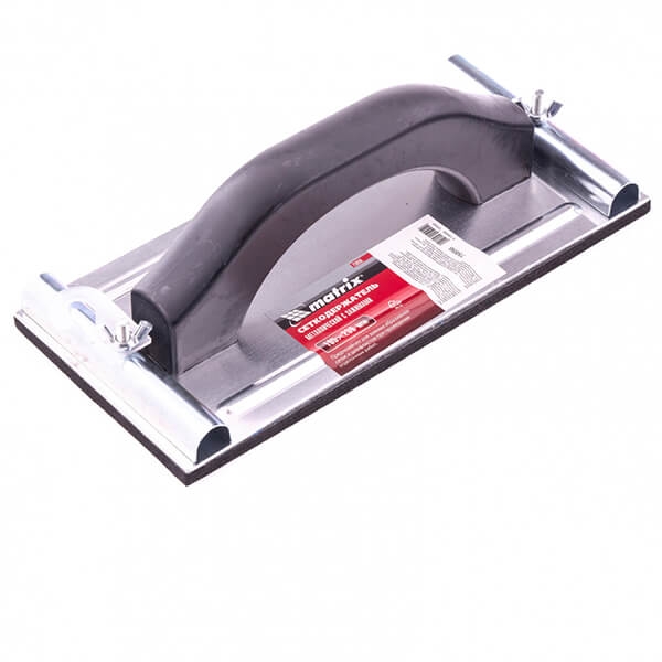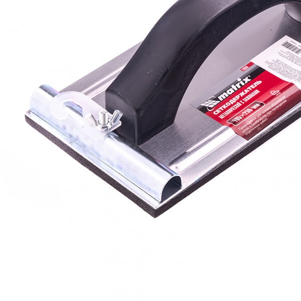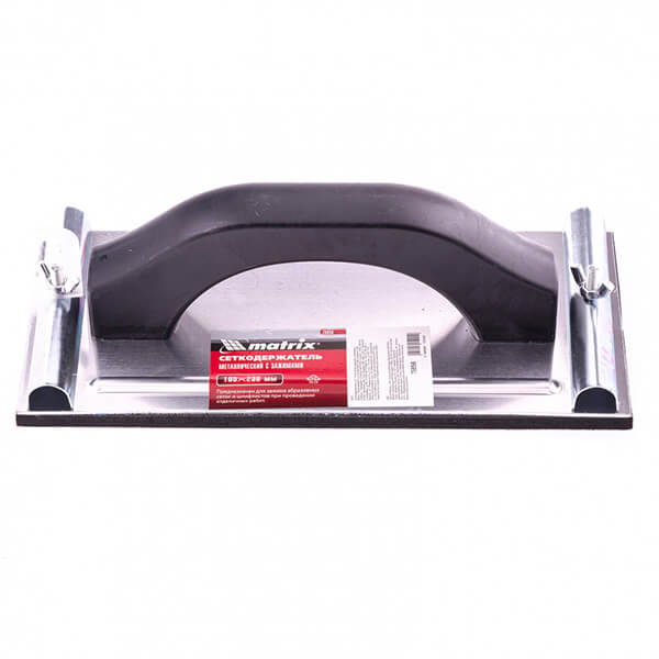Сеткодержатель металлический 230 х 105 мм с зажимами Matrix 75856 предназначен для шлифования и зачистки различных поверхностей, с помощью абразивных материалов (шлифлист, сетка) надежно фиксируя их с помощью металлических зажимов. Применяется для выравнивания поверхностей после штукатурки или шпатлевки, удаление неровностей, снятие различных покрытий или загрязнений с твердых поверхностей. Усиленная металлическая основа. Утолщенная пластиковая рукоятка. Износостойкая подошва из EVA.