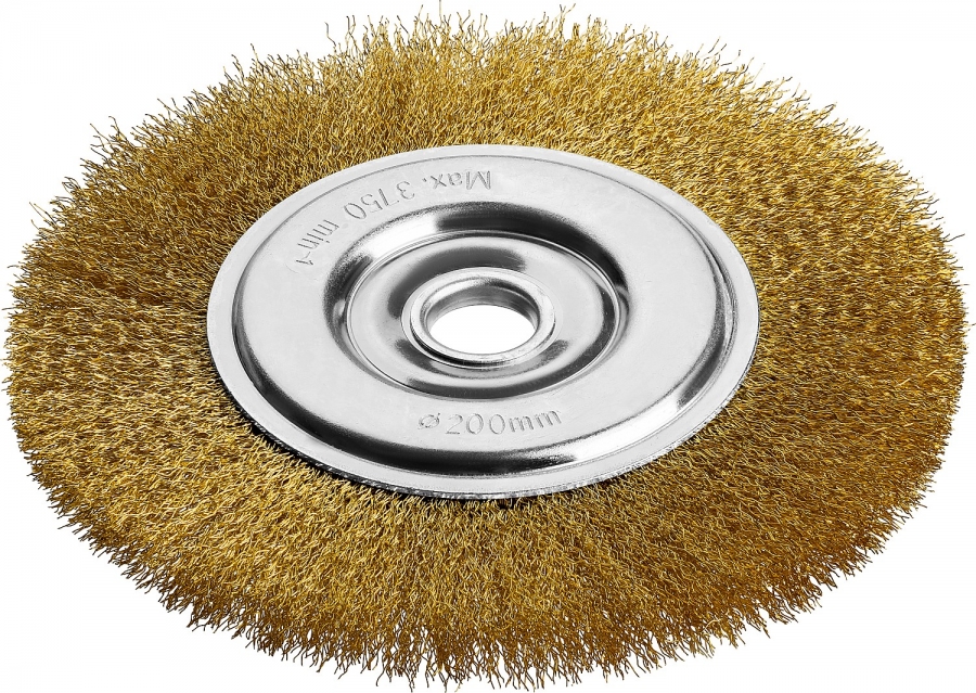 Щетка дисковая для УШМ, витая стальная латунированная проволока 0,3 мм, d=200 мм, MIRAX 35141-200 35141-200