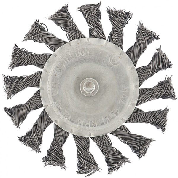Щетка для дрели 100 мм, плоская со шпилькой Matrix 74432 применяется для грубой очистки металлических поверхностей от ржавчины, грязи, удаления лакокрасочных покрытий и зачистки сварных швов