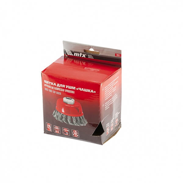 Щетка для УШМ 125 мм, М14, "чашка" Matrix 74617 применяется для грубой очистки металлических поверхностей от ржавчины, грязи, удаления лакокрасочных покрытий и зачистки сварных швов. Форма чашка обеспечивает хорошую площадь прилегания к поверхности и предназначена для обработки больших плоскостей.