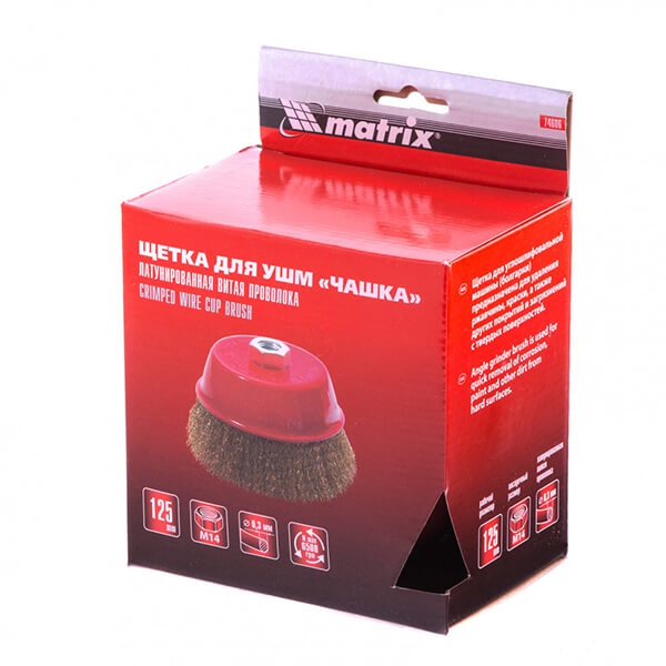 Щетка для УШМ 125 мм, М14, "чашка" Matrix 74606 применяется для щадящей очистки поверхностей от ржавчины, грязи, удаления лакокрасочных покрытий, получения заданной шероховатости. Форма чашка обеспечивает хорошую площадь прилегания к поверхности и предназначена для обработки больших плоскостей.