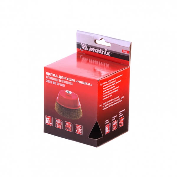 Щетка для УШМ 65 мм, М14, "чашка" Matrix 74603 применяется для щадящей очистки поверхностей от ржавчины, грязи, удаления лакокрасочных покрытий, получения заданной шероховатости. Форма чашка обеспечивает хорошую площадь прилегания к поверхности и предназначена для обработки больших плоскостей.