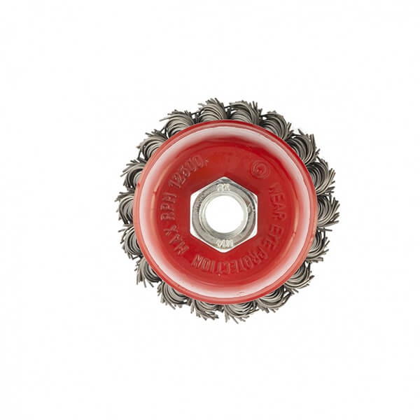Щетка для УШМ 75 мм, М14, "чашка" Matrix 74622 применяется для грубой очистки металлических поверхностей от ржавчины, грязи, удаления лакокрасочных покрытий и зачистки сварных швов.