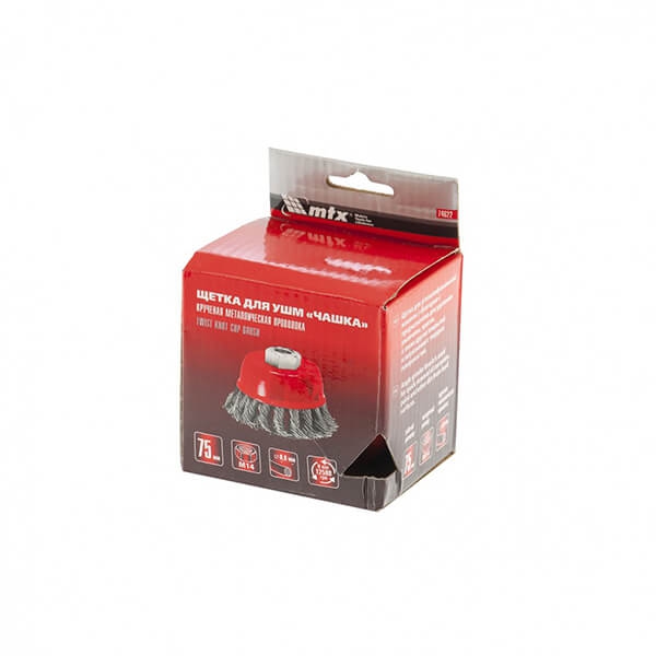 Щетка для УШМ 75 мм, М14, "чашка" Matrix 74622 применяется для грубой очистки металлических поверхностей от ржавчины, грязи, удаления лакокрасочных покрытий и зачистки сварных швов. Форма чашка обеспечивает хорошую площадь прилегания к поверхности и предназначена для обработки больших плоскостей.