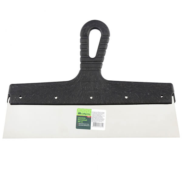 Шпатель фасадный из нержавеющей стали 300 мм Сибртех 85442 предназначен для нанесения, выравнивания и сглаживания шпаклевочного слоя на больших и малых поверхностях.