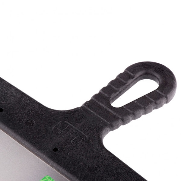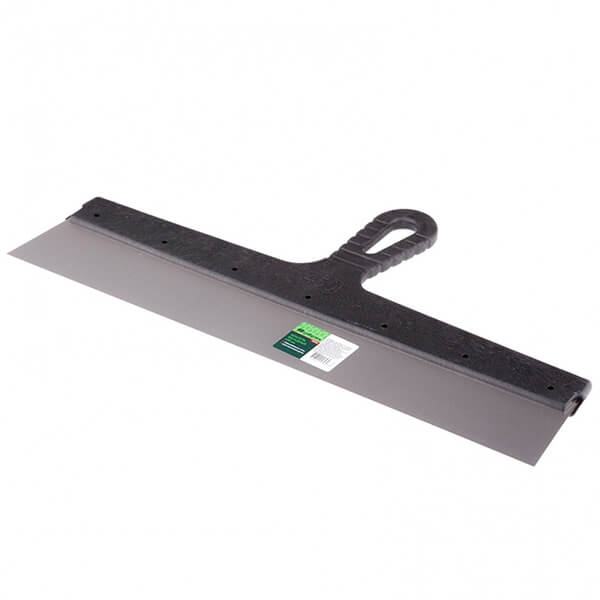 Полотно шпателя изготовлено из нержавеющей стали. Облегченная ручка из ударопрочной пластмассы.
