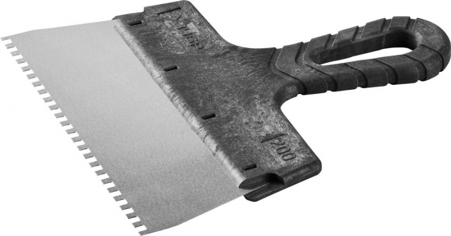 Шпатель ЗУБР Мастер ФАСАДНЫЙ, нержавеющее полотно, 200мм, зуб 4х4мм 10078-20-04