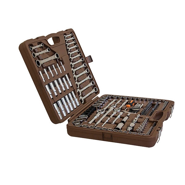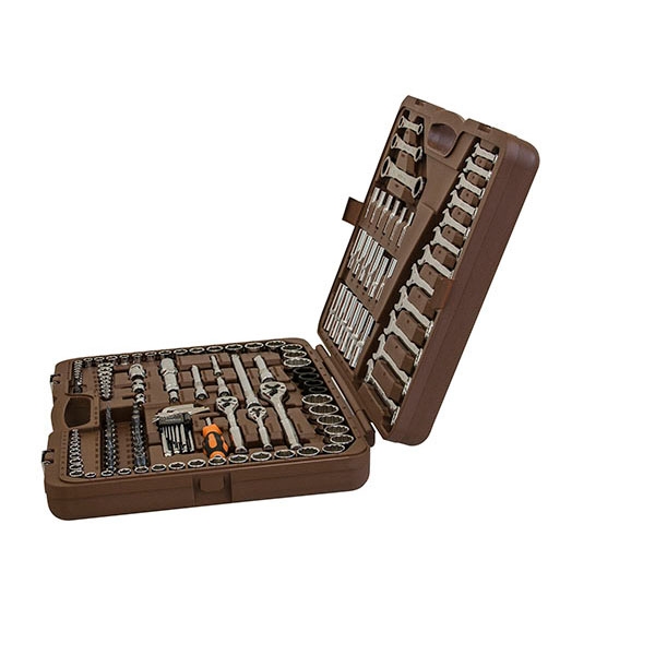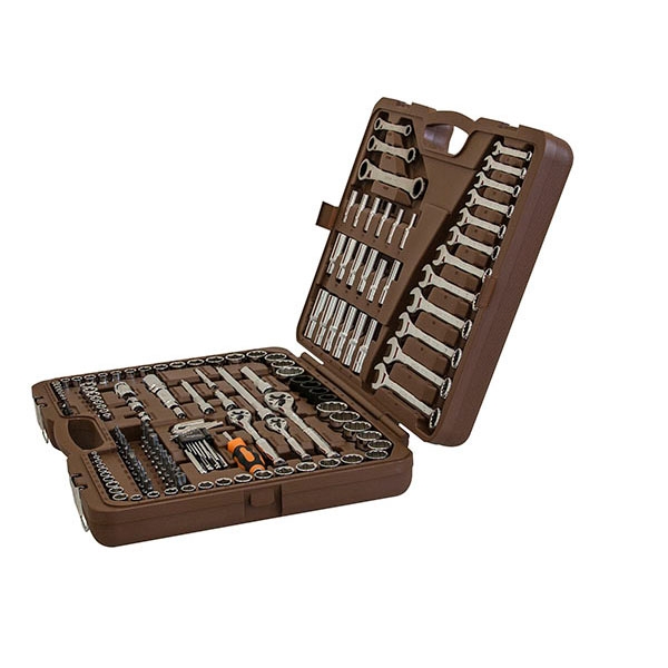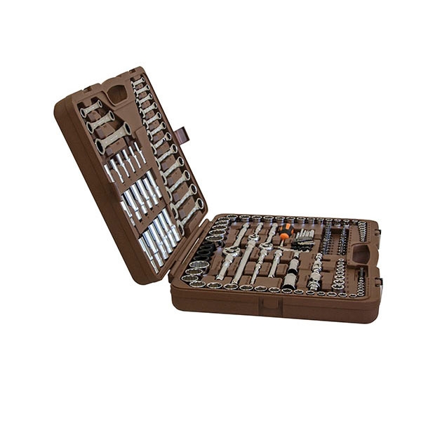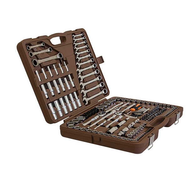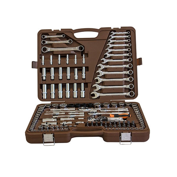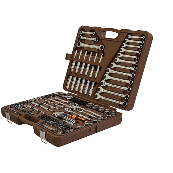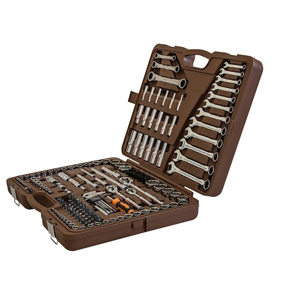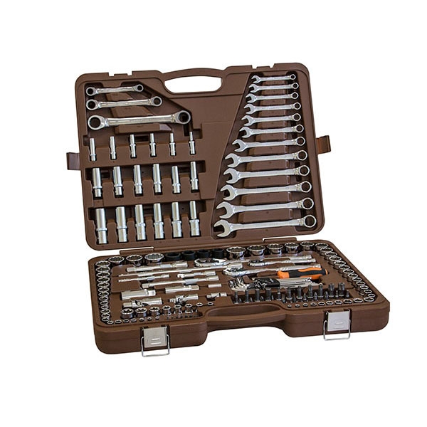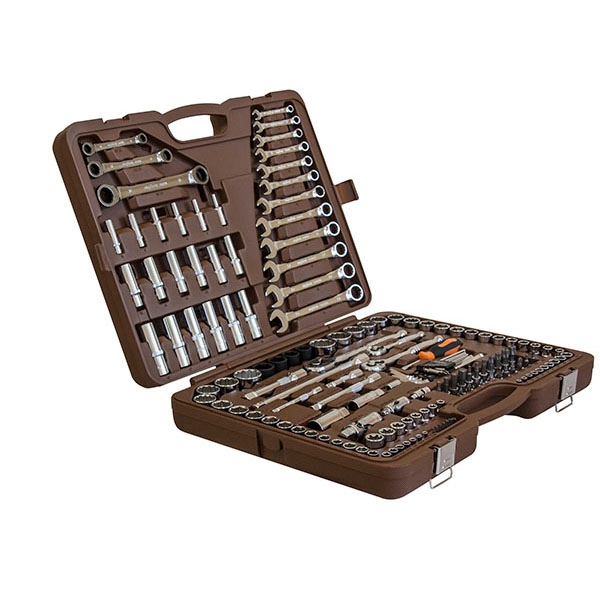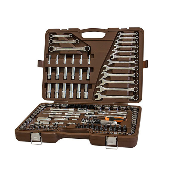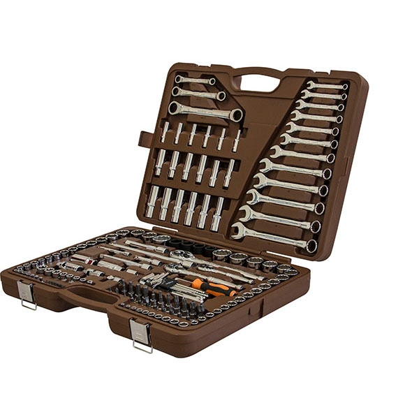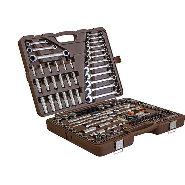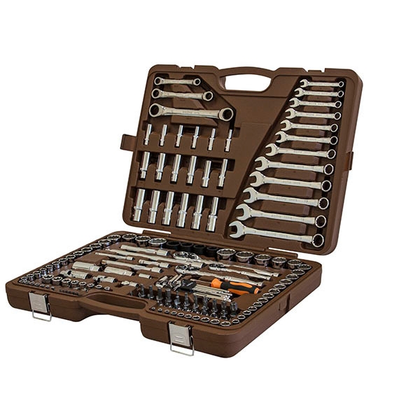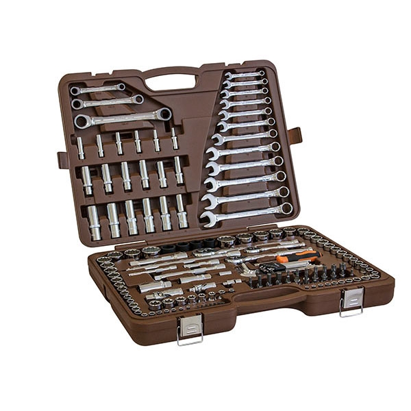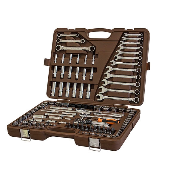 Специальный набор инструмента, комплектация которого расчитана на производство работ по техническому обслуживанию атомобильной техники в условиях ремонтных мастерских. Инструменты, входящие в состав набора, позволяют обслуживать крепежные детали метрических и дюймовых размеров. Ассортимент дополнен накидными ключами с храповыми механизмамии головками для механизированного инструмента распространенных размеров.
