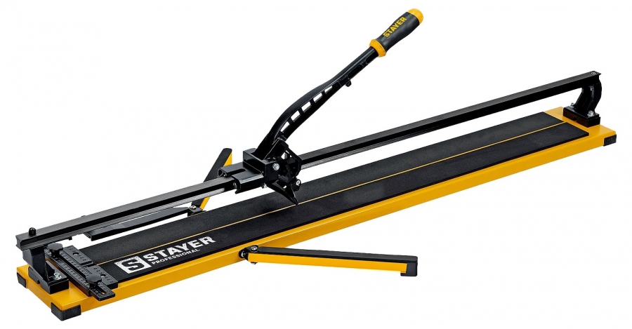 Усиленный плиткорез на монорельсе STAYER имеет самый плавный рез благодаря каретке и режущему элементу на подшипниках. Боковые опоры позволя т резать шировкую плитку.