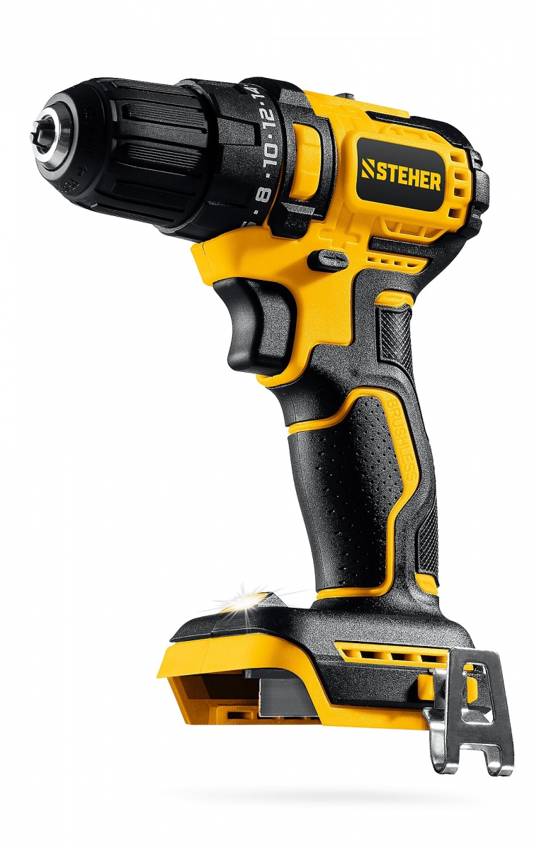 Бесщеточная дрель-шуруповерт STEHER обеспечивает как точное заворачивание маленьких саморезов, так и уверенное закручивание крупного крепежа до 8мм. Компактный размер и современный дизайн делают ее удобной для работы. Модель без АКБ и БЗУ позволяет сэкономить на покупке при наличии батарей системы LMS