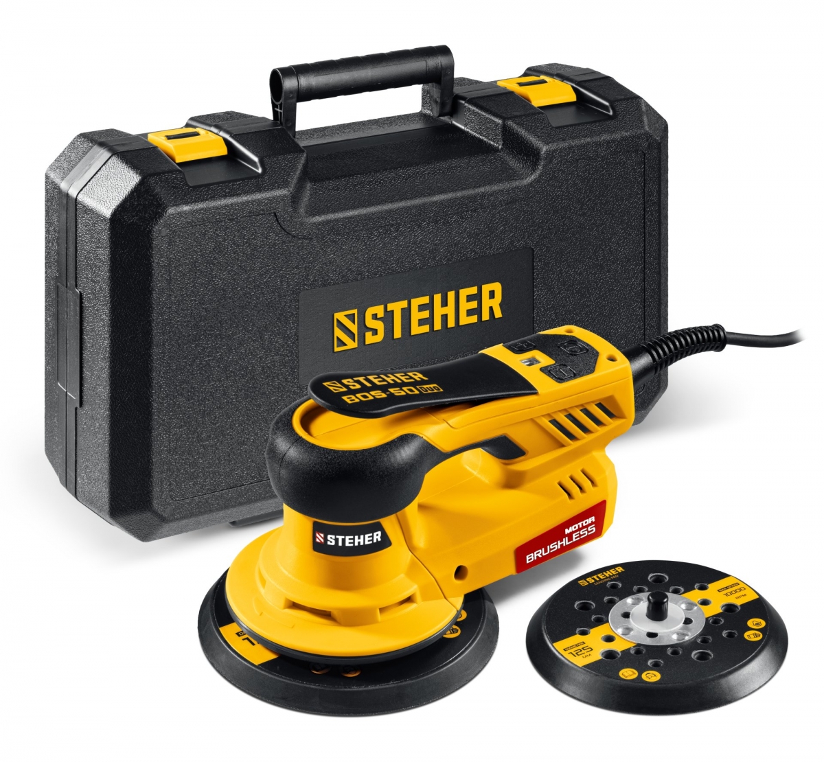 - защита от перегрузки предохраняет оператора и изделие - Эксцентриковый ход с большим эксцентриситетом 5.0 мм вкупе с вращательным движением имитирует ручное шлифование и предотвращает повреждение поверхности, т.к. на каждом обороте абразив движется по новой траектории