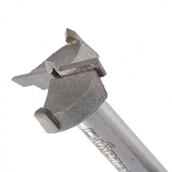Режущий ободок перерезает волокна на краях отверстия раньше, чем основные лезвия погружаются в древесину, и при этом почти не образуются сколы.