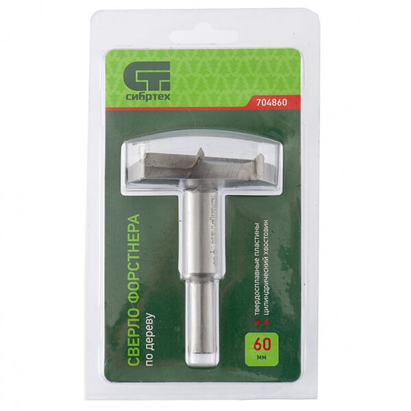 Сверло Форстнера по дереву 60 мм, ц/хв. Сибртех 704860 предназначено для точного высверливания глухих (не сквозных) чистых отверстий различных диаметров на небольшую глубину.
