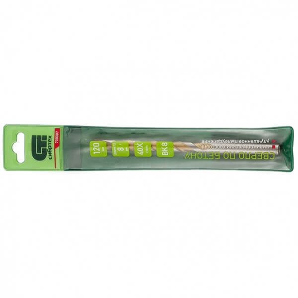 Специальное покрытие канавки с уменьшенным коэффициентом трения облегчает отвод отработанной бетонной пыли, снижая трение и нагрев сверла.Агрессивная форма заточки твердосплавной пластины оптимальна для ударного сверления.Материал режущей пластины – ВК8.Тело сверла изготовлено из стали 45.