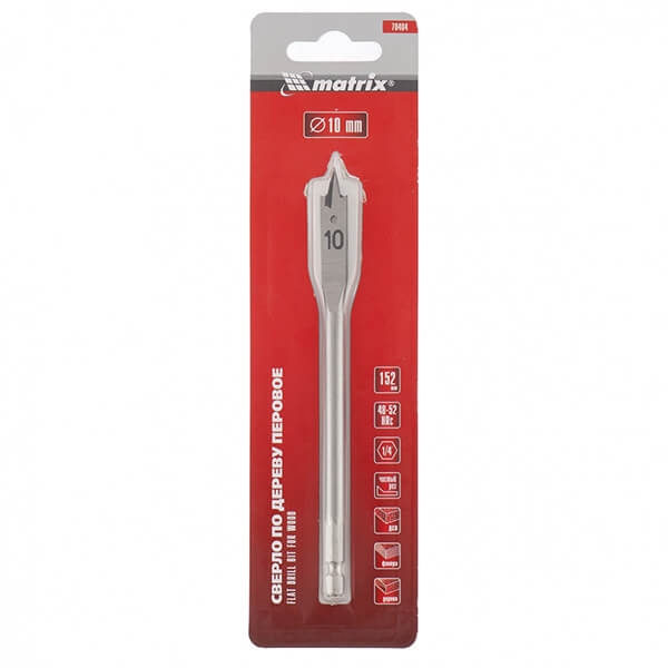 Сверло по дереву перовое 10х152 мм, HEX Matrix 70404 предназначено для получения отверстий в мягкой и твердой древесине с любым расположением волокон, клееной фанере, ДСП.