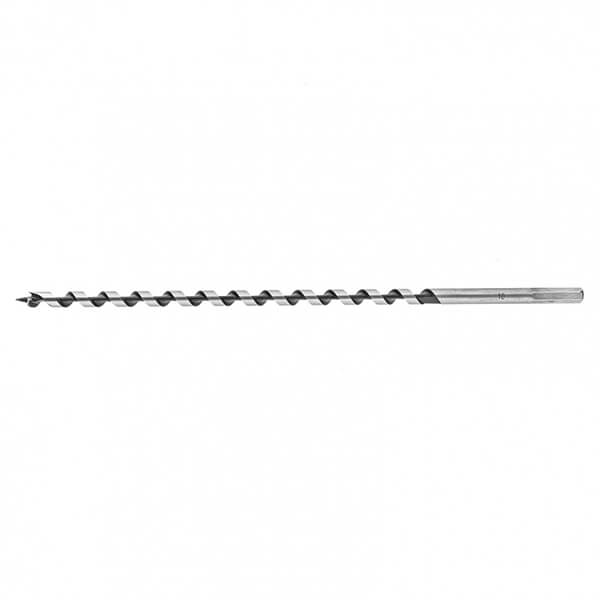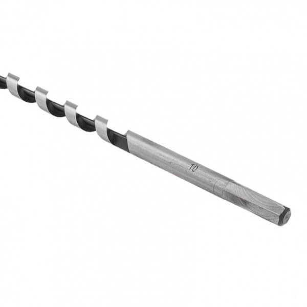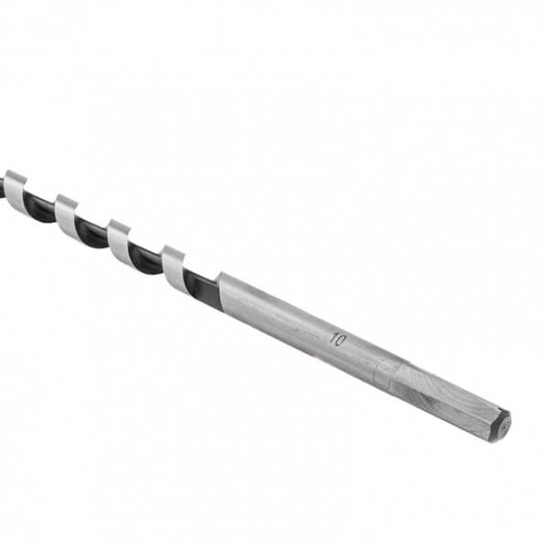 Сверло по дереву шнековое 10 х 350 мм, HEX Matrix 70123 изготовлено из углеродистой стали с твердостью режущей части 40 HRС. Сверло имеет центрирующее острие со спиральной нарезкой, уменьшающей осевую нагрузку. Сверло имеет острую подрезную кромку, которая позволяет с высокой точностью просверлить отверстие с гладкими поверхностями, предотвращая смещение сверла и исключая необходимость в предварительном засверливании. Шестигранный хвостовик обеспечивает надежное удержание сверла в патроне.