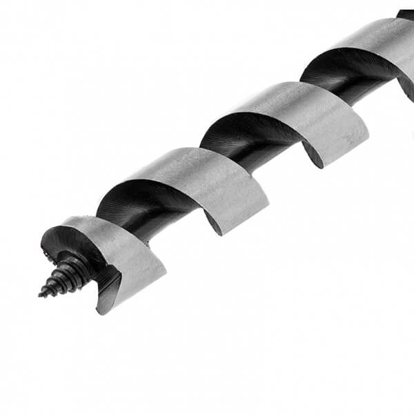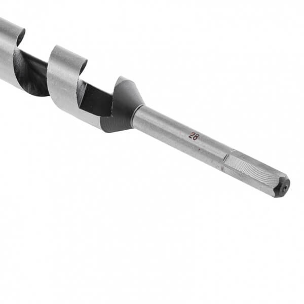 Сверло по дереву шнековое 28 х 350 мм, HEX Matrix 70151 имеет центрирующее острие со спиральной нарезкой, уменьшающей осевую нагрузку. Сверло имеет острую подрезную кромку, которая позволяет с высокой точностью просверлить отверстие с гладкими поверхностями, предотвращая смещение сверла и исключая необходимость в предварительном засверливании. Изготовлено из углеродистой стали с твердостью режущей части 40 HRС. Шестигранный хвостовик обеспечивает надежное удержание сверла в патроне.