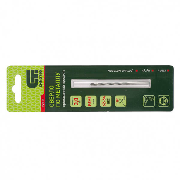 Сверло по металлу, 3 мм, Р6М5 Сибртех