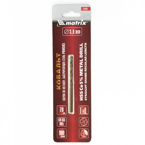 Сверло по металлу 3,8x75x43 мм, HSS Co-5% Matrix 71418 применяется для сверления отверстия в металле.