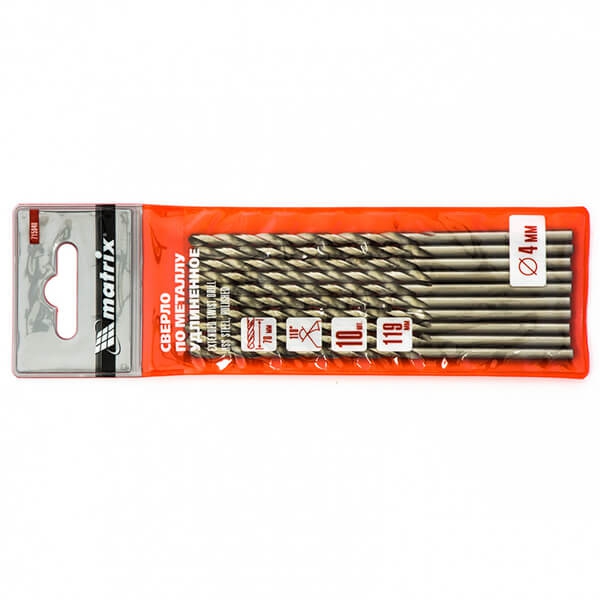 Сверло по металлу 4x119x78 мм, удлиненное, HSS, ц/хв., 10 шт Matrix 715040 предназначено для сверления отверстий в металле.