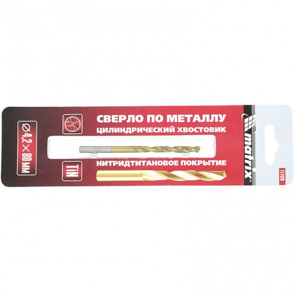 Сверло по металлу 4,2x75x43 мм, HSS, TiN, ц/хв. Matrix 717420 предназначено для сверления отверстия в металле.