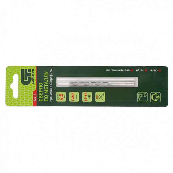 Сверло по металлу, 4,5 мм, Р6М5 Сибртех