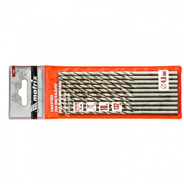 Сверло по металлу 4,8x132x87 мм, удлиненное, HSS, ц/хв., 10 шт Matrix 715048 предназначено для сверления отверстий в металле.