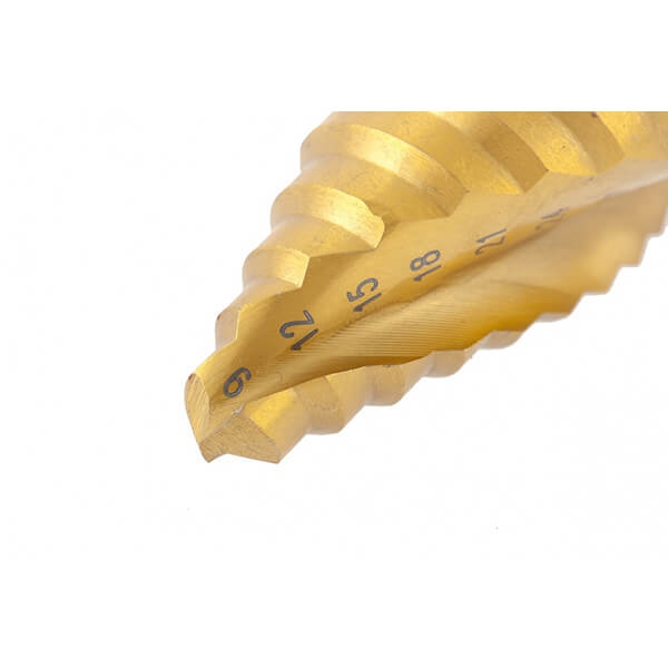 Сверло ступенчатое 9-36 мм, HSS, HEX Matrix 72358 предназначено для сверления отверстий разных диаметров в листовых и тонкостенных изделиях из стали до 4 мм, цветных металлов, нержавеющей стали и пластика. Каждый следующий размер имеет плавный переход в виде ступеньки, что позволяет получать аккуратное отверстие нужного диаметра.
