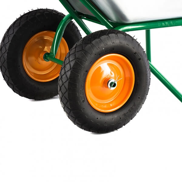 Шариковые подшипники обеспечивают легкость перемещения тачки с грузом.