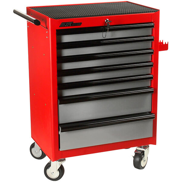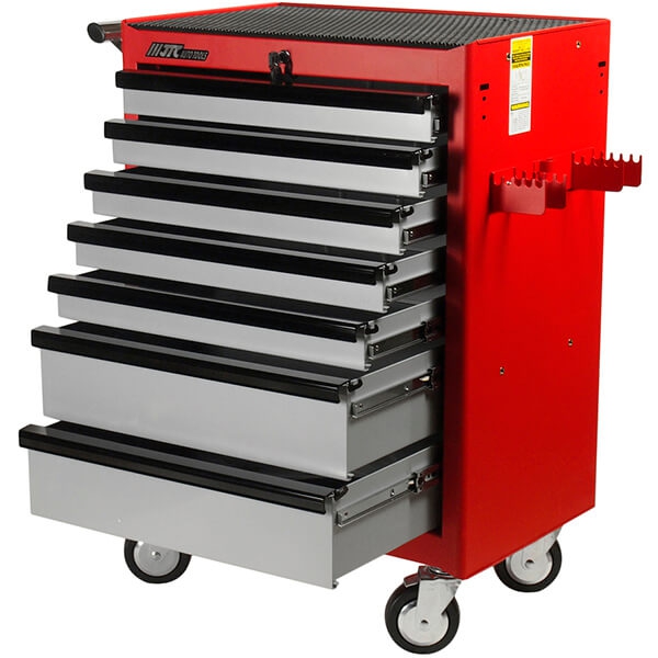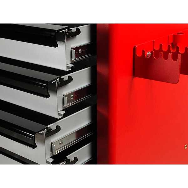 - 7 секций: пять плоских (580 х 377 х 59 мм) и два глубоких (580 x 377 x 138 мм) выдвижных ящика обеспечивают возможность размещения большого количества рабочего инструмента;