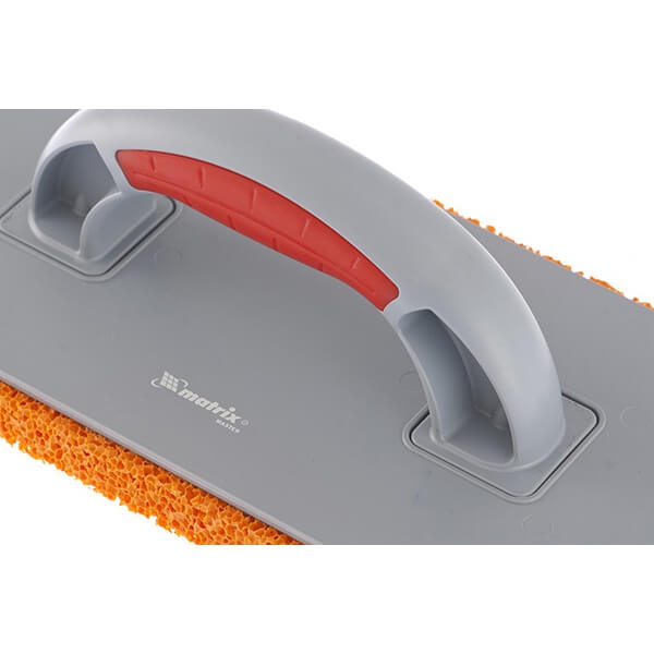 Терка пластмассовая 270 x 130 мм с гидрорезиновым покрытием Matrix 86807 предназначена для размягчения (размачивания) поверхностного слоя гипсовой штукатурки перед шпатлеванием, а также для мытья глазурованной (кафельной) плитки после затирки мокрого гипса.