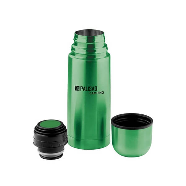 Термос классический с клапаном, 500 мл, зеленый Camping Palisad 69537 отлично подойдет для всех любителей активного отдыха. Изготовлен из высококачественной пищевой нержавеющей стали. Кнопочный механизм позволяет выливать содержимое, не откручивая крышку. Двойные стенки термоса сохраняют температуру холодных или горячих напитков. Вакуумная колба из нержавеющей стали обеспечивает безопасность использования и долгий срок службы (не разобьется).