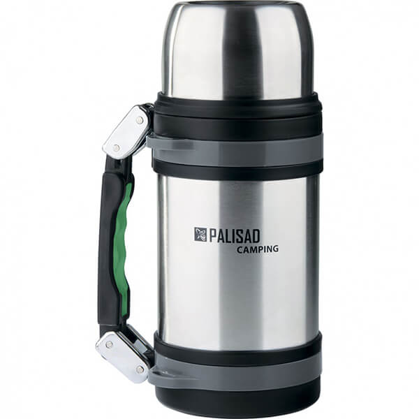 Термос туристический со складной ручкой, 1,5 л Camping Palisad 69533 отлично подойдет для всех любителей активного отдыха. Корпус и внутренняя колба термоса изготовлены из высококачественной пищевой нержавеющей стали. Двойные стенки термоса сохраняют температуру холодных или горячих напитков. Вакуумная колба из нержавеющей стали обеспечивает безопасность использования и долгий срок службы (не разобьется). Кнопочный механизм позволяет выливать содержимое, не откручивая крышку. Оснащен широким горлом, что позволяет использовать термос как для напитков так и для первых и вторых блюд. Благодаря складной ручки и ремню, удобен при транспортировке.