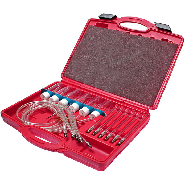 Тестер герметичности дизельных форсунок JTC JTC-4776 позволяет проводить статический и динамический тесты и увидеть объем перелива каждой из форсунок в прозрачной калиброванной мензурке или колбе, что позволяет быстро и легко определить неисправную форсунку. Не требует демонтажа форсунок и выявляет их неисправность по неравномерности &обратного сброса&. Подключается к каждой электромагнитной дизельной форсунке к обратной ветви слива топлива в бак. Одновременно позволяет подключать до 6 форсунок. Применяется с адаптерами JTC-4777. Применение Предназначен для использования на большинстве систем Common Rail: Bosch, Siemens, Denso и Delphi. В зависимости от модификации, может использоваться на двигателях с 4, 6 цилиндрами, а также на двигателях V6. Может использоваться для тестирования коммерческих автомобилей, дорожной, строительной и сельскохозяйственной техники. Используется на большинстве двигателей: Iveco, Perkins, Deutz, John Deere Sisu Diesel.