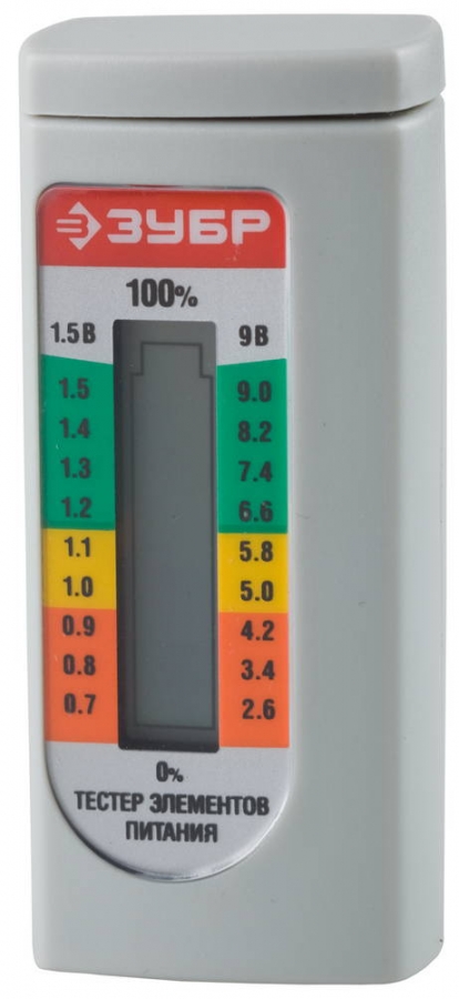 Тестер уровня заряда батарей ЗУБР для элементов питания ААА, АА, С, D, LR44, 6LR61(корунд) 59260
