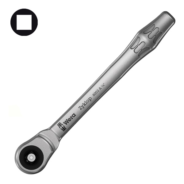 Трещотка Zyklop Metal 1/4" 8003 A Wera WE-004003 - кованая цельнометаллическая трещотка, которая позволяет работать в труднодоступных местах. Она подходит для торцовых насадок с квадратным приводом 1/4", а также для переходников с квадратным приводом 1/4".