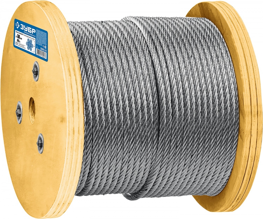 Трос грузоподъемный стальной, оцинкованный, DIN 3060, d=10 мм, L=60 м, ЗУБР Профессионал 30415-10