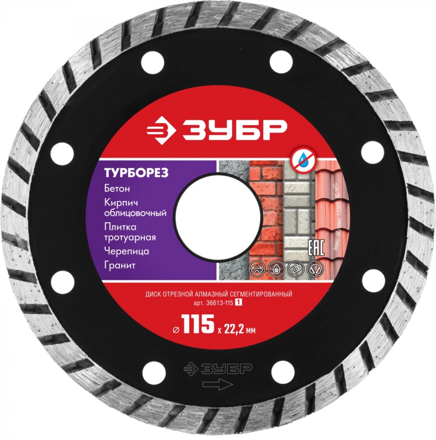 ТУРБОРЕЗ 115 мм, диск алмазный отрезной сегментированный по бетону, кирпичу, камню, ЗУБР 36613-115_z01