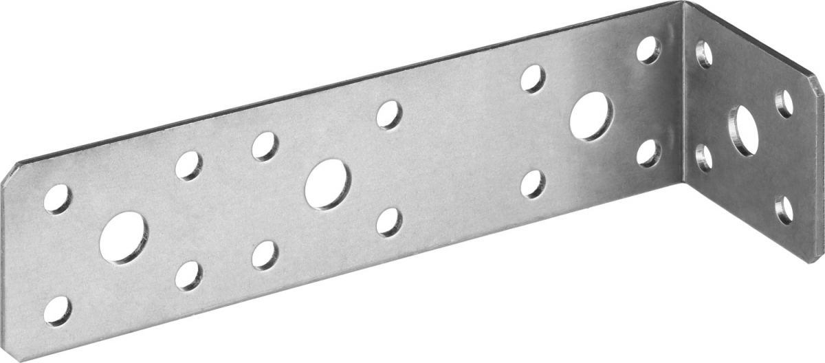 Угловые крепления (крепежные углы) – это основной элемент соединения перекрестно-перпендикулярных узлов. Монтаж перфорированного крепежа не требует предварительной врезки или создания пазов, выступов и прорезей. Формирование соединений возможно как с внутренней, так и с внешней стороны конструкции. Для монтажа деревянных конструкций совместно с перфорированными изделиями используются специальные ершеные гвозди с конической головкой или саморезы.