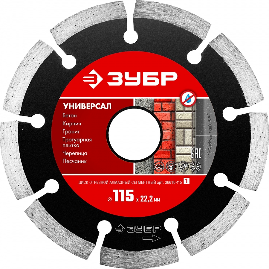 УНИВЕРСАЛ 115 мм, диск алмазный отрезной сегментный по бетону, кирпичу, камню, ЗУБР 36610-115_z01
