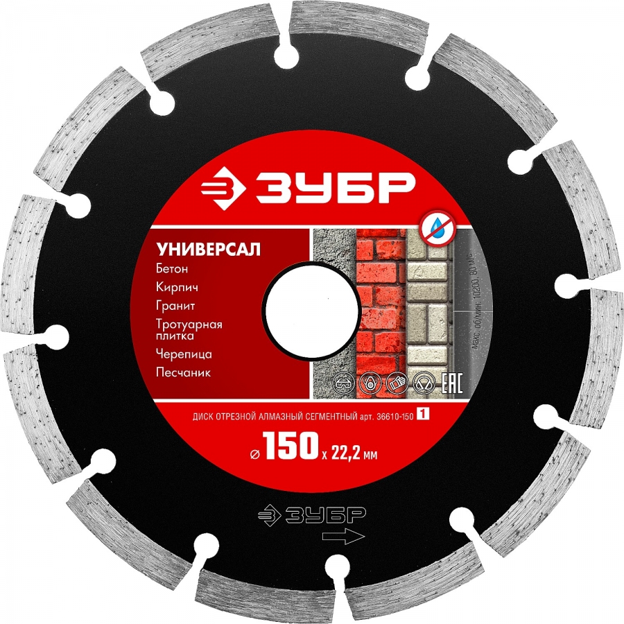 УНИВЕРСАЛ 150 мм, диск алмазный отрезной сегментный по бетону, кирпичу, камню, ЗУБР 36610-150_z01
