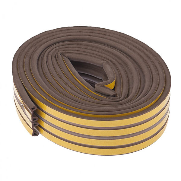 Универсальный уплотнитель коричневого цвета из вспененной резины EPDM, с уже нанесенным клеящим составом. Предназначен для уплотнения зазоров 3-5 мм в рамах окон и дверей, с целью предотвращения подсосов воздуха, пыли и защиты от шума. Образующаяся воздушная камера обеспечивает дополнительную шумо- и теплоизоляцию. Клеящий слой защищен от высыхания и смазывания бумажной лентой. При удалении не повреждает окрашенную поверхность. Хорошая адгезия клеящего слоя. Профиль "P".