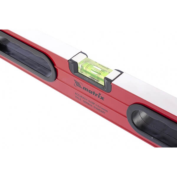 Уровень алюминиевый 600 мм, 3 глазка Matrix 34506 позволяет определять отклонения поверхностей не только по горизонтали и вертикали, но и от любых других произвольно заданных углов.Имеет жесткий усиленный алюминиевый профиль с метрической шкалой и ребрами жесткости. Фрезерованная рабочая поверхность обеспечивает дополнительную точность измерения. Модель имеет два акриловых глазка для проверки отклонений по горизонтали и вертикали, а также регулируемый глазок для выверки произвольных углов. Точность измерений – 0,5 мм/м. Пластиковые заглушки на концах имеют резиновые вставки, предотвращающие скольжение при измерениях на наклонных плоскостях. Ручки делают использование уровня максимально удобным.