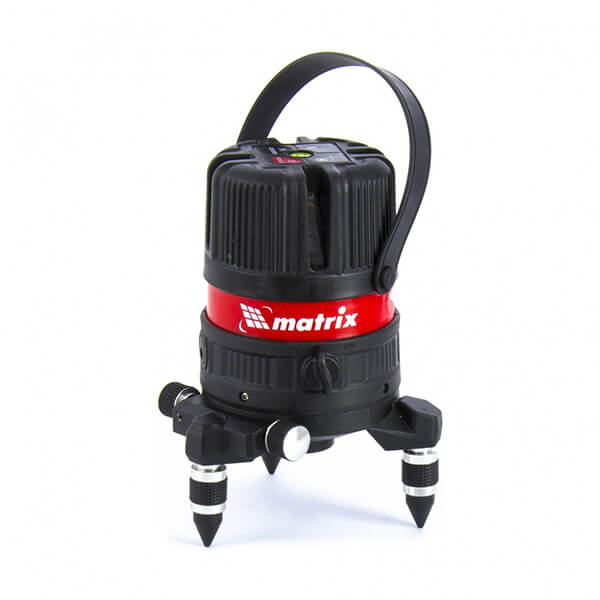 Уровень лазерный ML04P Matrix 35061 применяется при строительных и отделочных работах, при установке мебели и разметке помещений. Лазерный самовыравнивающий уровень проецирующий на плоскость одну горизонтальную и 4 вертикальных линии сходящихся и образующих точку зенита а так же проецирующий точку отвеса. Оснащен закладной гайкой 5/8 дюйма позволяющим использовать уровень со штативом. Имеет точность 0,3 мм на метр, рабочая дальность без приемника до 20 м. Обладает влагопылезащищенным корпусом, может работать как от штатного аккумулятора так и от съемных батареек тип АА.