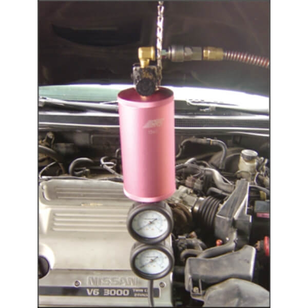 Устройство для очистки топливной системы JTC JTC-1340 предназначен для очистки топливных систем инжекторных и карбюраторных двигателей, проверки давления топливной системы, очистки топливных форсунок, промывки впускной системы, тестирования качества работы форсунок. Позволяет устранить неисправности, такие как: затрудненный запуск двигателя, повышение расхода топлива, неустойчивая работа на малых оборотах, повышенный уровень СО, СН, повышение температуры (перегрев), возникновение детонации, выход из строя элементов топливной системы. Устройство позволяет проводить обслуживание топливной системы, не прибегая к трудоемким разборо-сборочным работам. Обеспечивает быструю (по сравнению с аэрозольным методом) и эффективную очистку загрязненных топливных форсунок. Крепится под капотом автомобиля при помощи специального крепления, подключение подачи воздуха осуществляется при помощи быстросъемного соединителя. Удобная цветовая гамма и структура шкалы манометров. Прибор имеет клапан для регулировки давления подачи воздуха в систему. Емкость для очищающей жидкости (колба) изготовлена из высококачественных сплавов меди и алюминия, с плотно закрывающейся крышкой. Устройство эффективно очищает систему от загрязнения, нагара, образовавшихся смол на распылителях инжектора, засорений топливных фильтров шлаком и. т. п., нормализуя при этом прежнюю работу двигателя. Своевременное проведение работ по очистке и обслуживанию топливной системы данным устройством предохраняет узлы двигателя от преждевременной поломки. В качестве очищающей жидкости рекомендуется использовать Pro Inject-R Kleen, а также возможно использование жидкости любых других фирм производителей (например, Wynns). Диапазон измерений: 0-100 psi (0-7 кгс/см). Емкость бака: 600 мл.