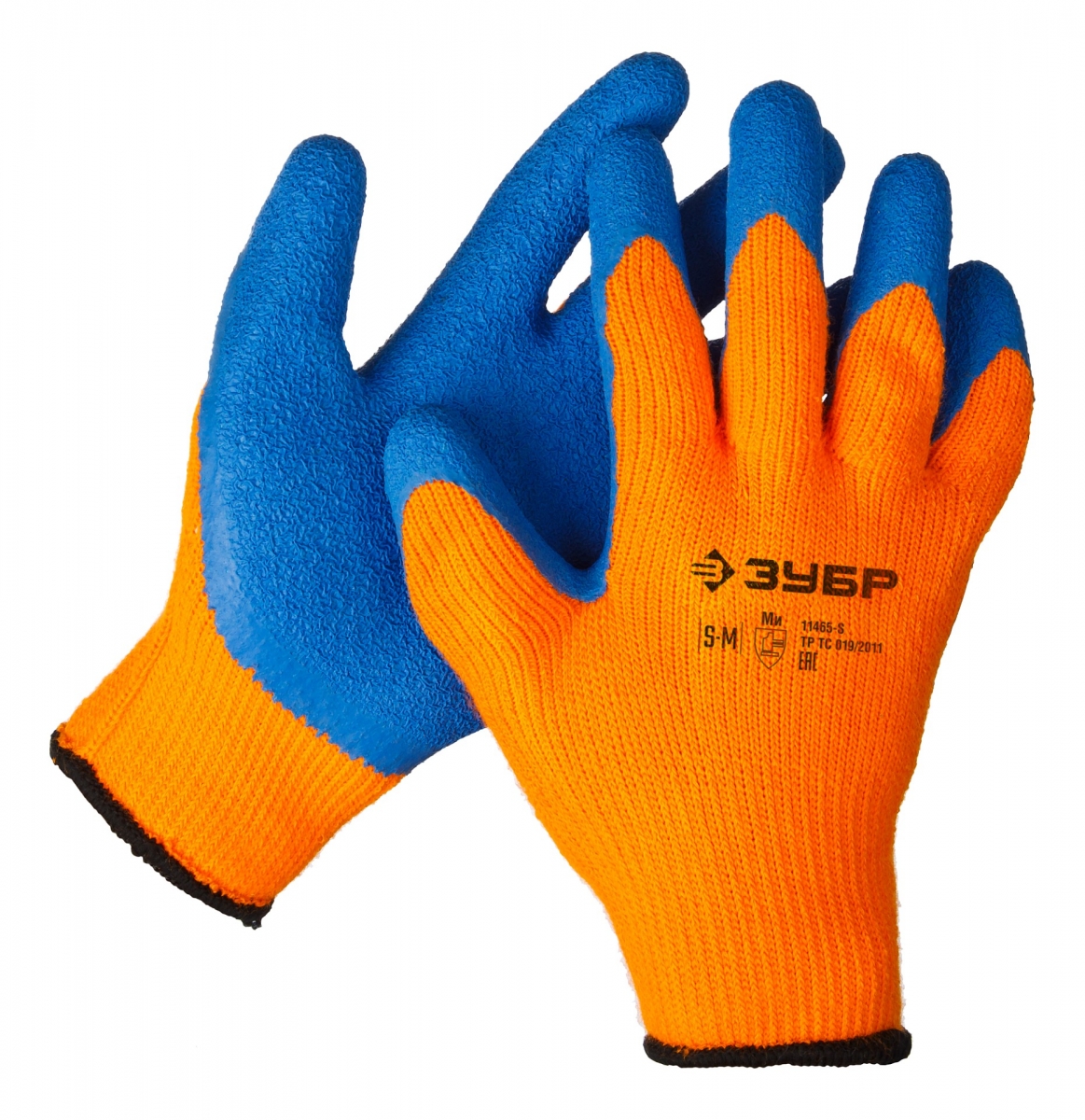 Утеплённые перчатки ЗУБР УРАЛ, акрил, рельефное латексное покрытие, сигнальный цвет, размер S-M 11465-S