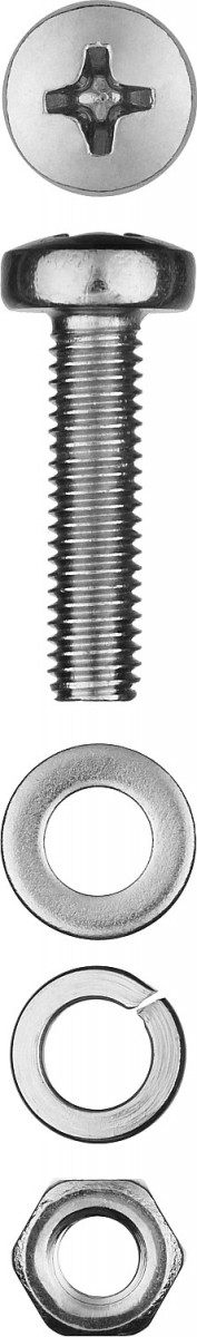 Винт (DIN7985) в комплекте с гайкой (DIN934), шайбой (DIN125), шайбой пруж. (DIN127), M4 x 20 мм, 24 шт, ЗУБР 303476-04-020