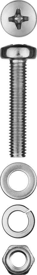 Винт (DIN7985) в комплекте с гайкой (DIN934), шайбой (DIN125), шайбой пруж. (DIN127), M4 x 30 мм, 20 шт, ЗУБР 303476-04-030