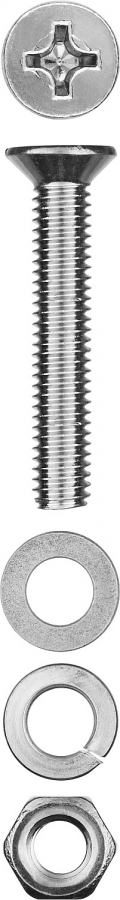 Винт (DIN965) в комплекте с гайкой (DIN934), шайбой (DIN125), шайбой пруж. (DIN127), M5 x 40 мм, 12 шт, ЗУБР 303456-05-040