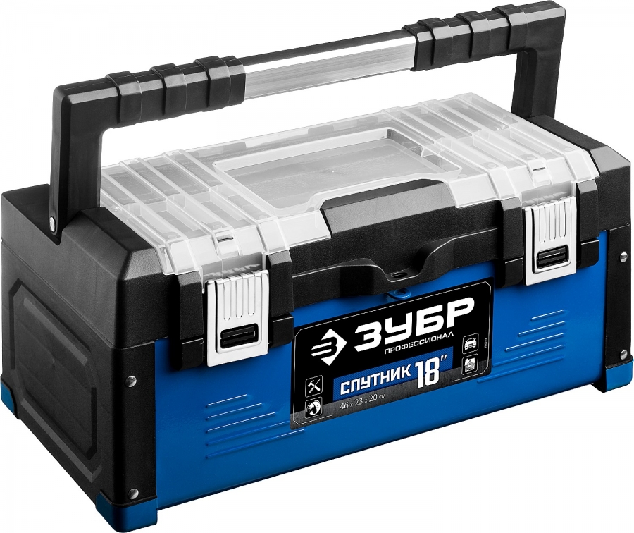 Прочный металлический ящик позволяет организовать удобное и надежное хранение большого количества инструментов. Широкая алюминиевая рукоятка помогает сместить центр тяжести ящика, если это необходимо